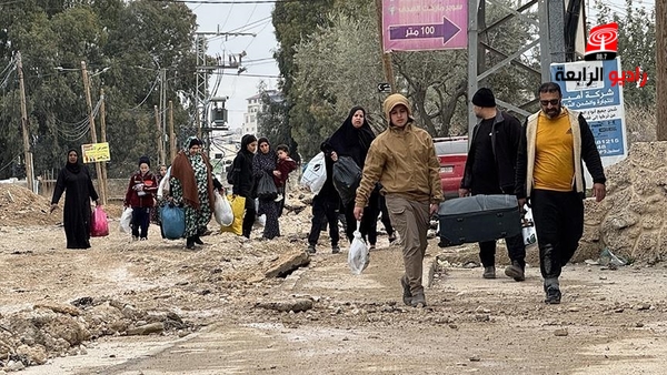وأن النازحين يسيرون على الأقدام أو باستخدام عربات يجرها حيوانات، في ظل انعدام وسائل النقل وانتشار الدمار في الطرق الرئيسية والفرعية.