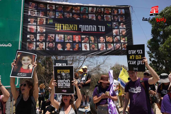 الرابعة نيوز - تظاهر حشد من مئات اليساريين الإسرائيليين، الجمعة، قرب حدود قطاع غزة للمطالبة بالتوصل إلى صفقة لتبادل الأسرى مع حركة حماس ووقف الحرب.