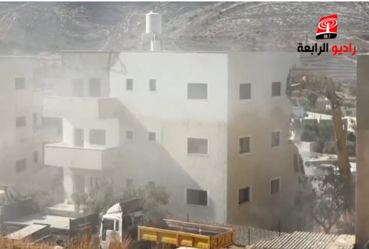 شاهد- جيش الاحتلال يهدم بناية سكنية غرب رام الله
