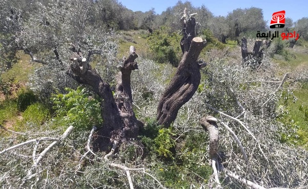 الرابعة نيوز_ قطع مستعمرون، بحماية قوات الاحتلال الإسرائيلي، اليوم الاثنين، عشرات أشجار الزيتون، في قرية جلبون، شرق جنين.