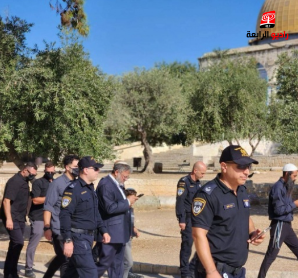 الرابعة نيوز_ اقتحم مئات المستوطنين، باحات المسجد الأقصى المبارك منذ ساعات الصباح الأولى، على رأسهم وزير الأمن القومي الإسرائيلي المتطرف "إيتمار بن غفير"، وذلك في إطار إحياء لما يسمى "ذكرى خراب الهيكل" المزعوم، وسط حماية أمنية مشددة من قوات الاحتلال.