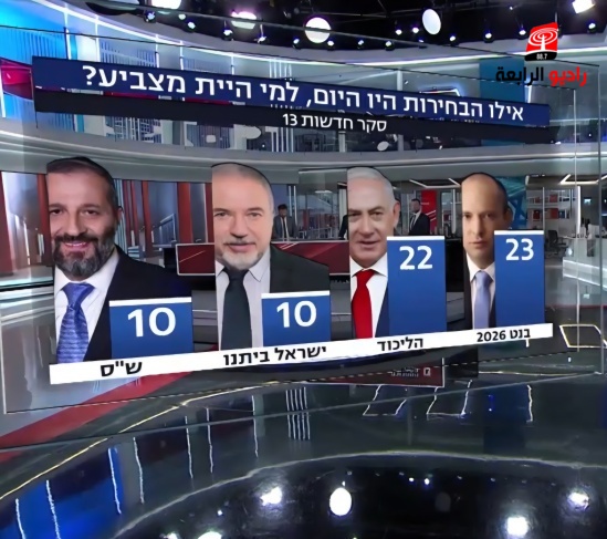 أما في حال دخوله مع لابيد فسيحصلان معًا على 11 مقعدًا فقط، فيما يقفز بينيت منفردًا إلى 30.