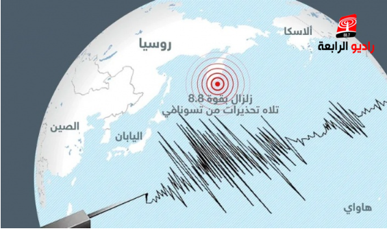 الرابعة نيوز_ ضرب زلزال، اليوم السبت، سواحل الشرق الأقصى الروسية، وسط توقعات بأن تتسبب هذه الهزة الأرضية في موجات مد عاتية "تسونامي" خطيرة.