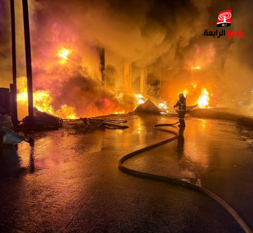 وبحسب شهود عيان، فقد تعرض المصنع لخسائر كبيرة جراء النيران التي التهمت معدات وآلات المصنع.