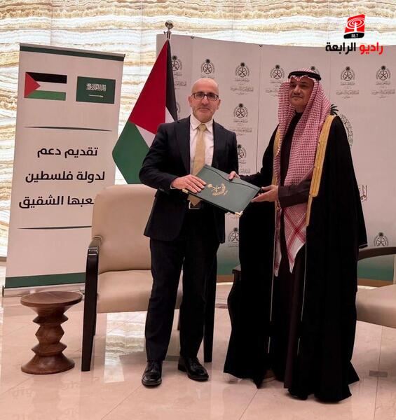 الرابعة نيوز- تسلّم وزير التخطيط والتعاون الدولي، مُسير أعمال وزارة المالية اسطفان سلامة، اليوم الاثنين، دفعة من المنحة المقدمة لدولة فلسطين من المملكة العربية السعودية بقيمة 90 مليون دولار، في إطار الدعم السعودي المستمر لدولة فلسطين لعام 2025.