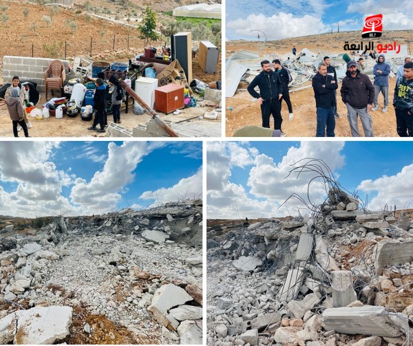 الرابعة نيوز_هدمت قوات الاحتلال الإسرائيلي، اليوم الثلاثاء، ثلاثة منازل في خربة "خلة الفرا"، إحدى تجمعات قرى غرب يطا، جنوب الخليل.
