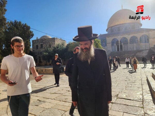 وذكرت مصادر محلية، أن من بين المقتحمين حاخاما متطرفاً يدعى "شمشون ألبويم"، والذي يرأس منظمة تدعو لهدم المسجد الأقصى لبناء الهيكل المزعوم.