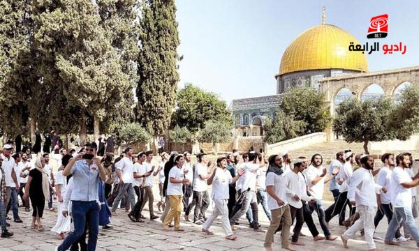 الرابعة نيوز - اقتحم مستوطنون المسجد الأقصى المبارك في اليوم الأول من شهر رمضان، في ظل ممارسات وصفت بالاستفزازية، حيث أدى بعضهم رقصات وأناشيد داخل باحات المسجد، تحت حماية قوات الاحتلال.