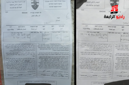 الرابعة نيوز_أخطرت قوات الاحتلال الإسرائيلي، وما تُسمى بـ"الإدارة المدنية"، اليوم الاحد، ستة منازل بوقف العمل في منطقة "بيرين" جنوب مدينة الخليل.