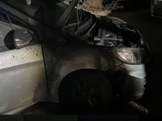 مستوطنون يحرقون مركبة ويخطون شعارات جنوب نابلس