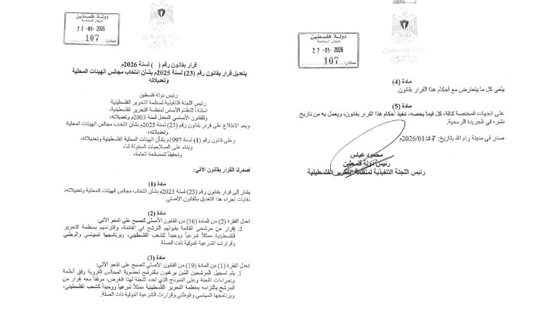 لجنة الانتخابات تتسلم تعديلا على قانون انتخاب الهيئات المحلية 2026
