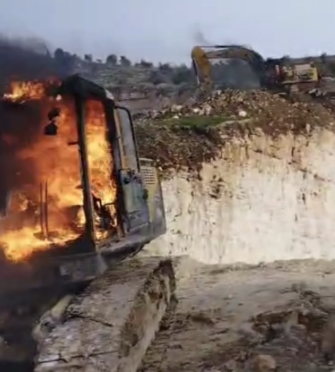 المستوطنون يحرقون آليات تابعة لكسارات الشمال جنوب نابلس