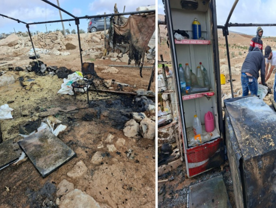 نجاة عائلة من محاولة حرق خيمتهم على يد مستوطنين جنوب الخليل