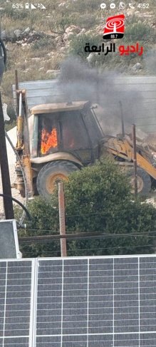 وأفاد مواطنون بان مجموعه من المستوطنين اضرموا النار بجرافة في بروقين تعود ملكيتها للمواطن رامي صبره أثناء تواجدها بمنطقه الخلايل.