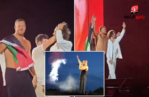 الرابعة نيوز_ أثار مغني فرقة "إيماجين دراجونز" الأمريكية جدلا واسعا على وسائل التواصل الاجتماعي بعدما قبل العلم الفلسطيني خلال حفلة ضخمة أقيمت الأسبوع الماضي في مدينة ميلانو الإيطالية.