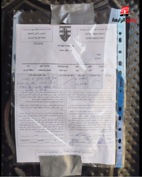 الرابعة نيوز _سلمت سلطات الاحتلال الإسرائيلي، اليوم الاحد، ثمانية اخطارات بوقف العمل والبناء في بلدة بروقين غرب سلفيت.