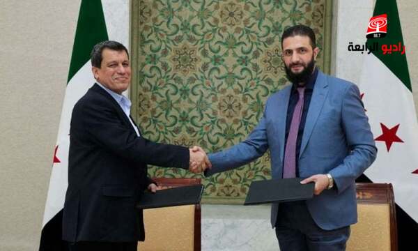 الرابعة نيوز - دمشق - وقع الرئيس الانتقالي أحمد الشرع وقائد قوات سوريا الديمقراطية مظلوم عبدي الاثنين اتفاقا يقضي “بدمج” كافة المؤسسات المدنية والعسكرية التابعة للإدارة الذاتية الكردية في إطار الدولة السورية، وفق ما أعلنت الرئاسة.