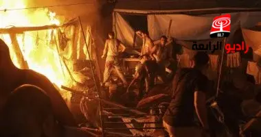 وأدى القصف إلى اشتعال النيران في الخيام واحتراق الجثامين والمصابين.