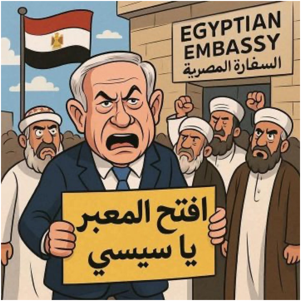 وأضاف : "بحسب وسائل الإعلام المصرية، نتنياهو هو المرشد العام لجماعة الإخوان المسلمين، وأنا مساعده على مواقع التواصل الاجتماعي. يدّعون أن مؤامرة دبرت بين إسرائيل والإخوان المسلمين (طرفين متعارضين) لإلحاق الضرر بمصر، وأن هذه مؤامرة سرية. يدّعون أن هناك صلة مباشرة ووثيقة بين إسرائيل والإخوان المسلمين. إسرائيل، كما يدّعون، هي من يوجّه المتظاهرين الذين ينفجرون حول العالم مطالبين بفتح معبر رفح. الإخوان المسلمون هم الأذرع الطويلة لإسرائيل. ومهما بدت هذه الأمور بعيدة الاحتمال، فإن شريحة كبيرة من الجمهور المصري تصدقها".