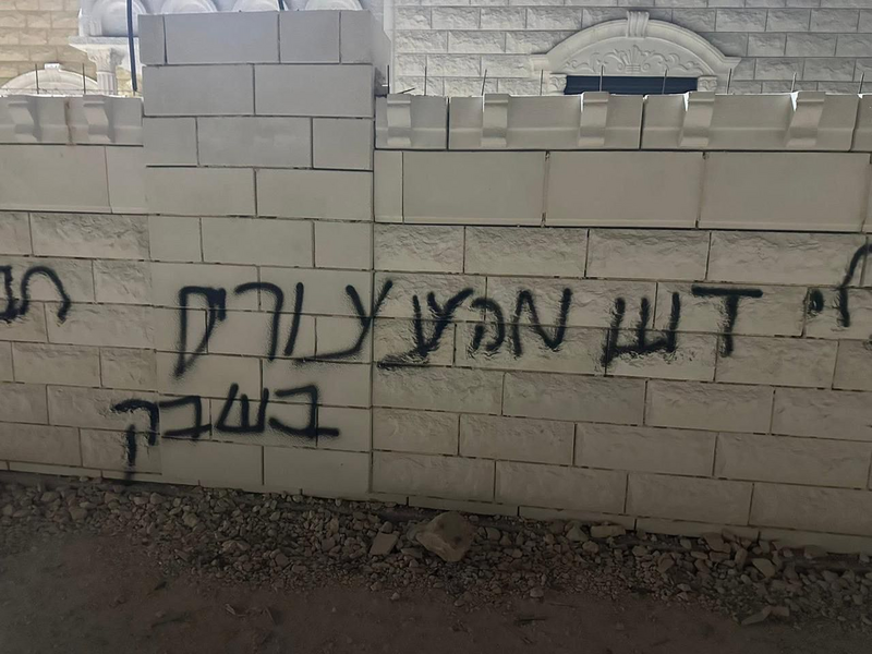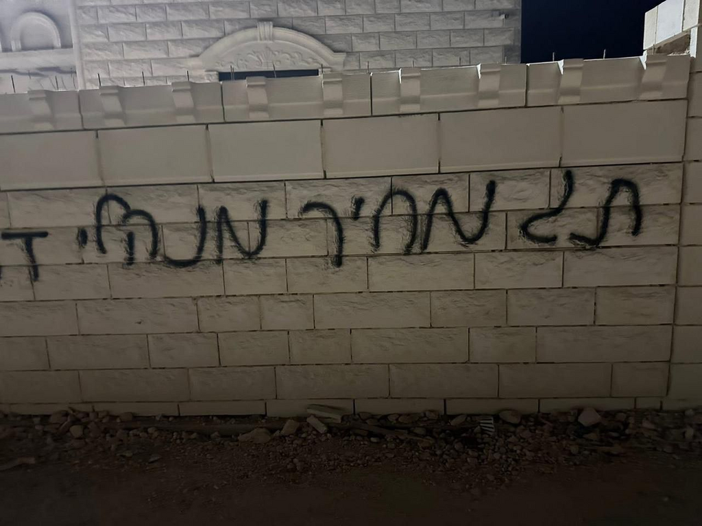 وأفادت مصادر محلية، بأن مستوطنين هاجموا البلدة، وحاولوا إحراق مركبة ما ألحق أضرارا بهيكلها الخارجي، كما خطوا شعارات عنصرية على جدران منزل المواطن رامي سراحنة.