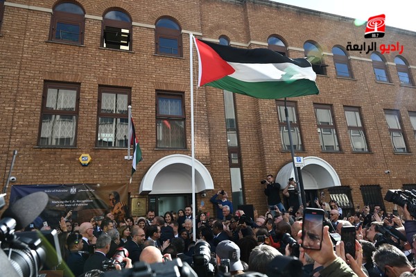 الرابعة نيوز_رفع، ظهر اليوم الاثنين، علم دولة فلسطين فوق مبنى سفارتنا في لندن، بحضور وزير الدولة البريطاني لشؤون الشرق الأوسط هاميش فالكونر، عدد من السفراء، وممثلين عن الأحزاب.