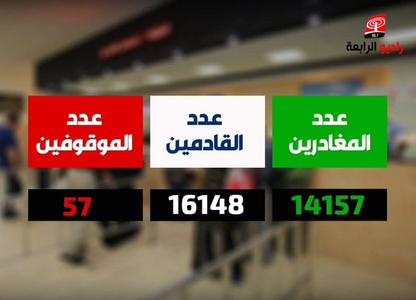 وقالت الشرطة، إن عدد المغادرين خلال الأسبوع بلغ (14,157) شخصًا، فيما بلغ عدد القادمين (16,148) شخصًا، مشيرةً إلى أن حركة المسافرين كانت متوسطة.