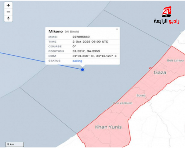 ودخلت "ميكينو" مياه غزة الإقليمية وهي على بعد 9 أميال بحرية من شواطئ القطاع