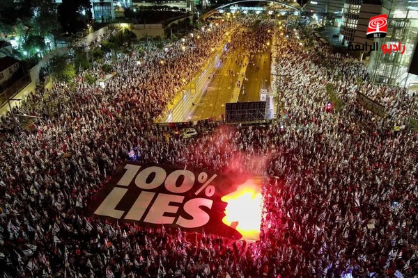 الرابعة نيوز- تظاهر الآلاف من الإسرائيليين في مدينة تل أبيب مساء اليوم السبت، في أعقاب قرار حكومة رئيس الوزراء بنيامين نتنياهو بتوسيع العمليات البرية والحرب على قطاع غزة.