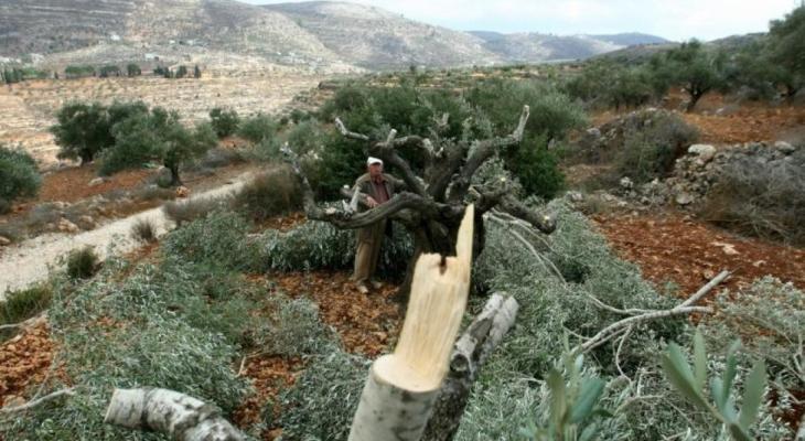 المستوطنون يقطعون أشجار الزيتون جنوب سلفيت