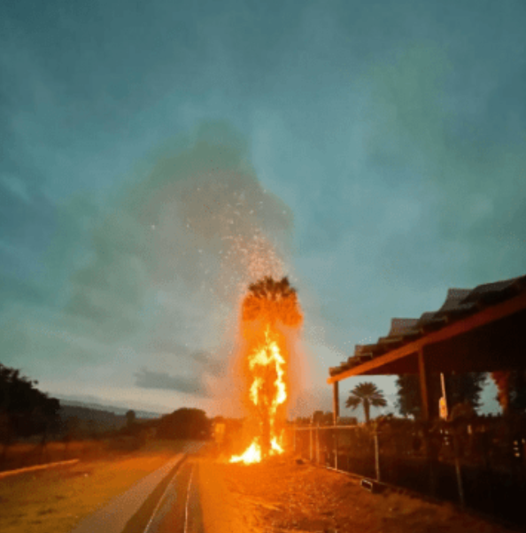 صاعقة تضرب شجرة نخيل على الحدود الاردنية